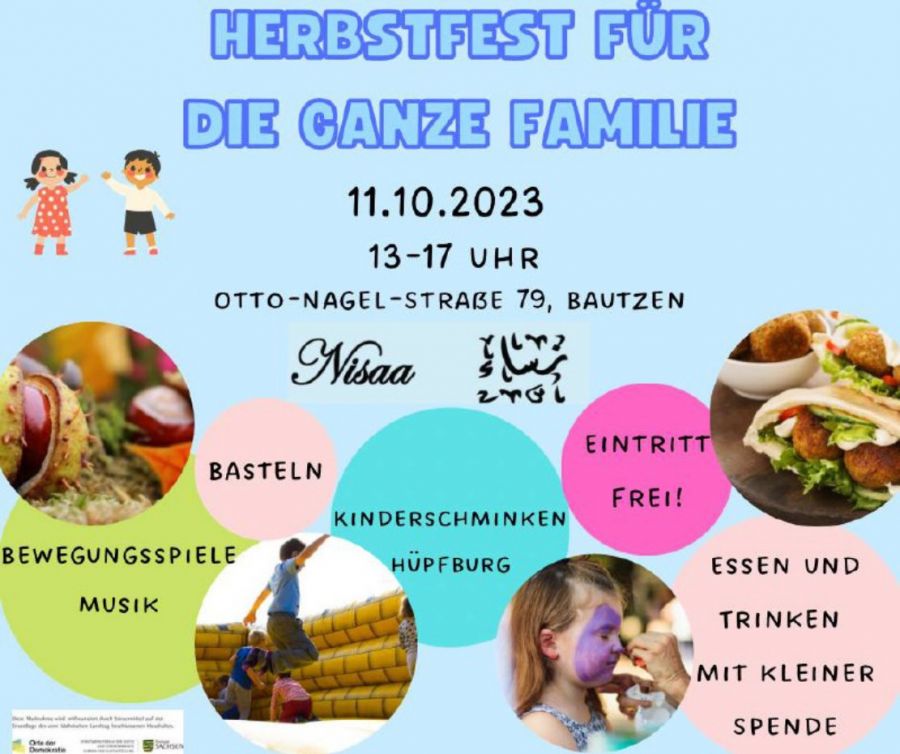 Schon Pläne für den 11.10.2023? Wie wäre es mit einem Herbstfest für die ganze Familie im Gesundbrunnen Bautzen? Wir laden alle Familien aus dem Gesundbrunnen und ihre Freunde herzlich ein, gemeinsam einen tollen Tag zu verbringen! Es warten viele Attraktionen auf euch, wie z.B. eine Hüpfburg, Kinderschminkenl und viele Leckereien! Also, kommt vorbei und lasst uns gemeinsam den Herbst und das Miteinander feiern!