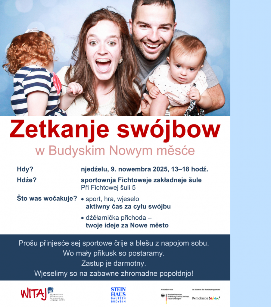Swójbne zetkanje je zhromadny projekt Rěčneho centruma WITAJ a Kamjentneho domu z.t., při kotrymž móžeće so na wotměnjawe popołdnjo połne sporta, hrow & zabawy wjeselić!