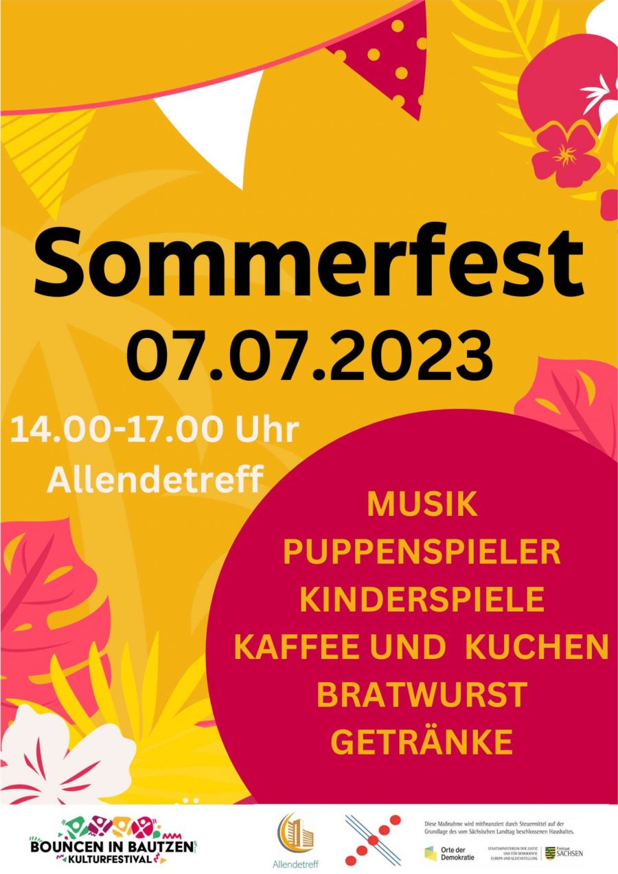 Am 07.07.2023 ab 14:00 Uhr feiern wir gemeinsam im Allendeviertel unser Sommerfest! Es erwarten euch tolle Aktivitäten, leckeres Essen und viel Spaß für die ganze Familie. 🎉🍔🌭